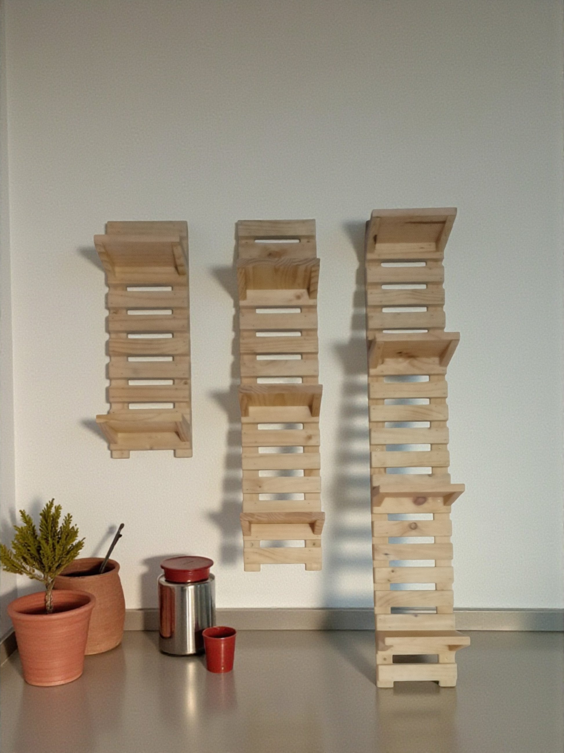 Uso: Ideal para crear composiciones verticales en interiores o Exteriores, optimizar el espacio, y exhibir plantas pequeñas (suculentas, hierbas) o artículos decorativos.